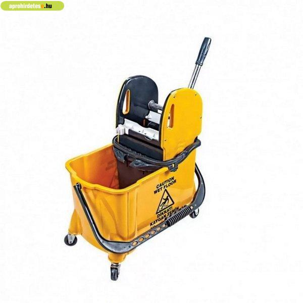 Takarítókocsi, műanyag vázas, sárga, 24 literes sárga színű 8 literes belső,