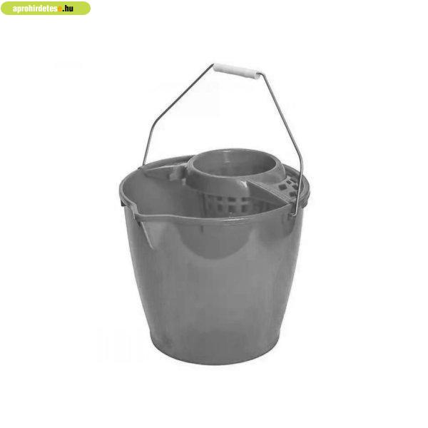 Háztartási felszerelések rovaton belül a(z) "Felmosó vödör 12 literes kicsavaró kosárral kerek szürke" című hirdetést látja. (fent)