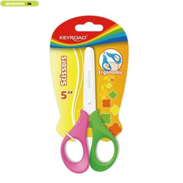Olló 13 cm tompa fejű Keyroad Start zöld rózsaszín