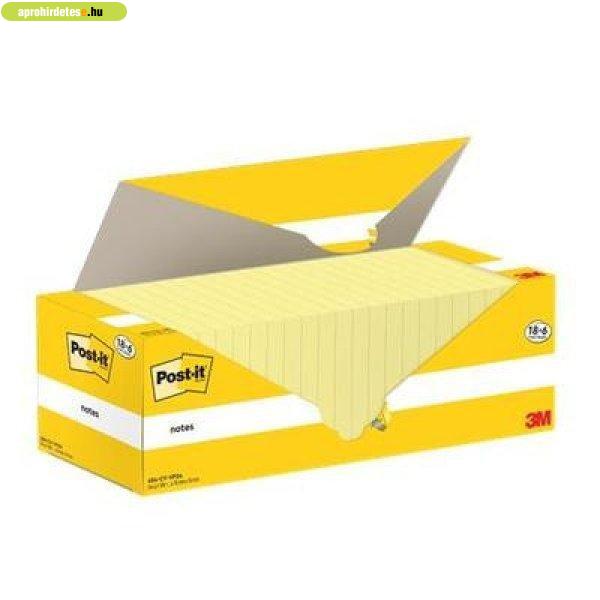 Öntapadó jegyzettömb, 76x76 mm, 18+6x100 lap, 3M POSTIT, kan
