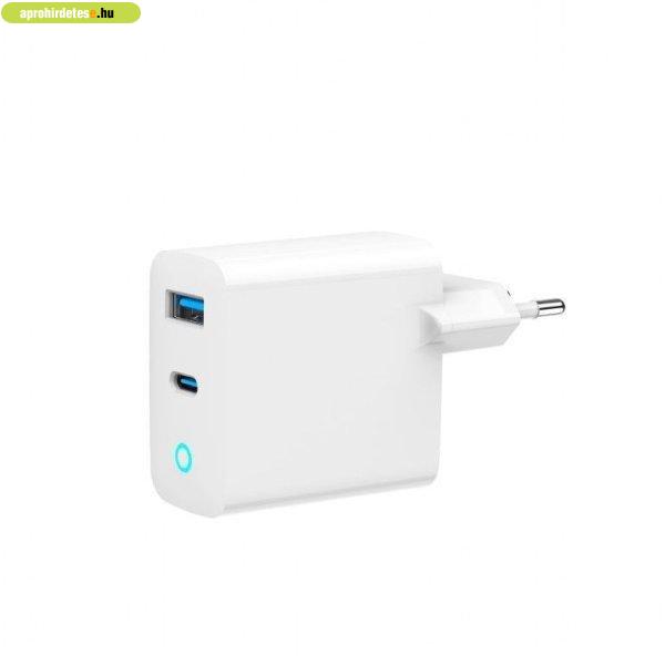 Adapter, 1xUSB-A, 1xUSB-C, 5V/9V/12/15/20V, 3A, 30W, QC, PD, White 30 W
