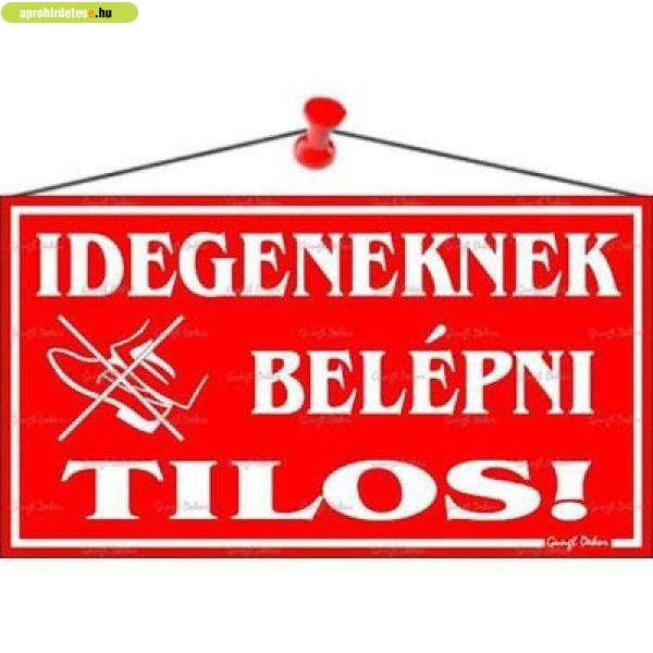 Ha kiírnál valamit, ez praktikus. Idegeneknek belépni tilos! információs
