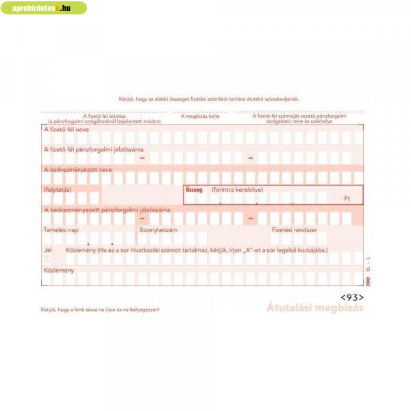 Nyomtatvány átutalási megbízás A6, PFNY.11 2pld