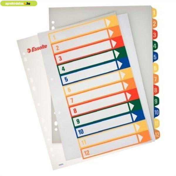 Regiszter, műanyag, A4 Maxi, 1-12, nyomtatható, Esselte, áttetsző - többször