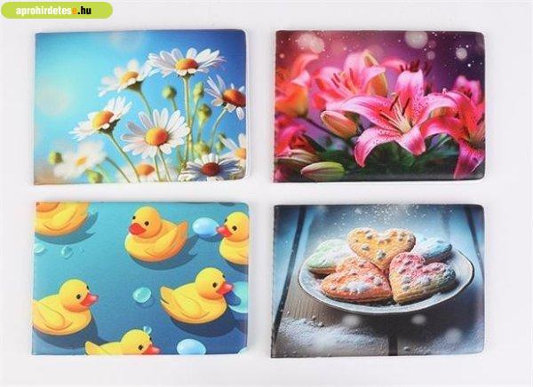 mintás PVC fedlappal -fekvő formátum -lapszám: 6 lap -méret: 98×70 mm -súly: 32