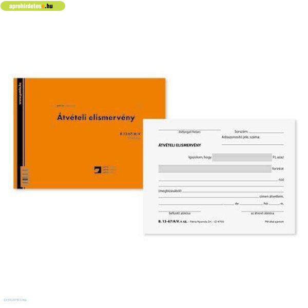 Irodatechnika, Biztonságtechnika rovaton belül a(z) "Átvételi elismervény 50 x 3 lap B.13-67/A/V Pátria" című hirdetést látja. (fent)