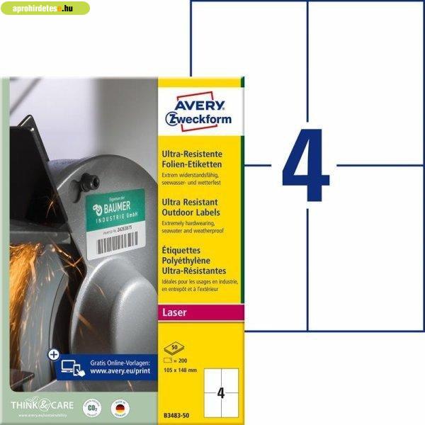 Az Avery Zweckform B3483-50 cikkszámú, fehér, ultra ellenálló film címkéit,