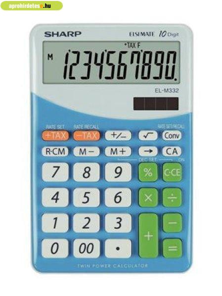 Számológép, asztali, 10 számjegy, SHARP "EL-M332", kék 10 számjegyes döntött