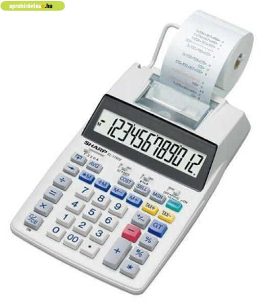 Számológép, szalagos, 12 számjegy, 2 színű nyomtató, SHARP "EL-1750V" 12
