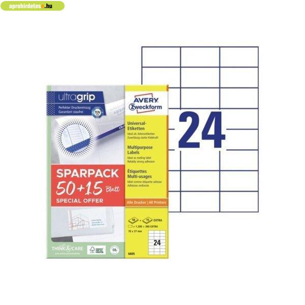 Etikett címke, 70x37mm, univerzális, 65 lap, 24 címke/lap Av
