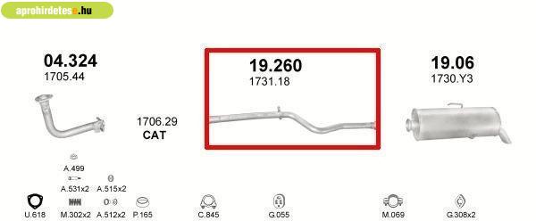 Járműalkatrész rovaton belül a(z) "Kipufogócső, közép, Peugeot 106 1.0-1.5, 1991-2004" című hirdetést látja. (fent)