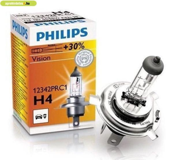 Philips H4 VISION autó izzó 12V 60/55W +30% fény!
