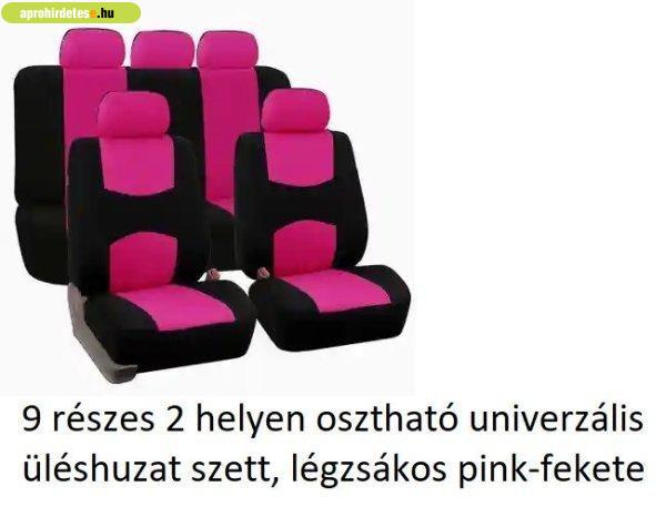 9 részes 2 helyen osztható univerzális üléshuzat szett, légzsákos pink-fekete 9