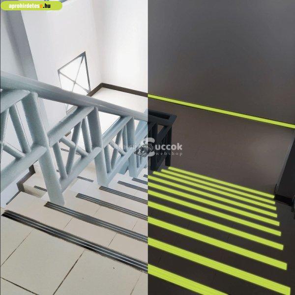 fluoreszkáló szalag. Természetes és mesterséges fénnyel is feltölthető.