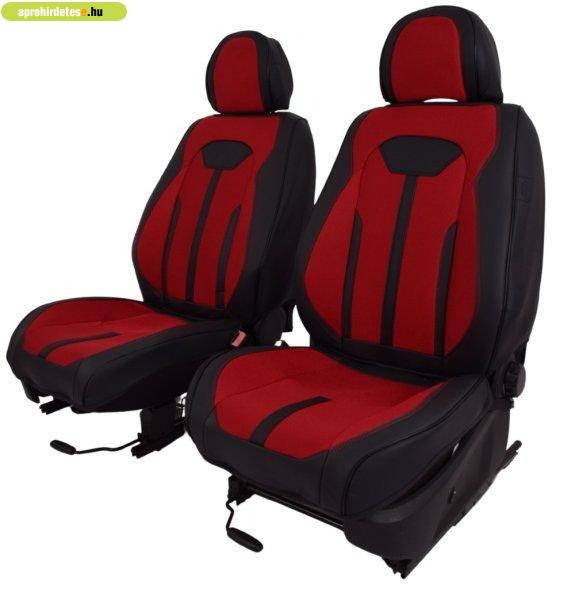 üléseit. A bordó és fekete színű, bőr és szövet kombinációjából készült huzat