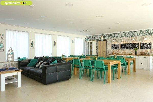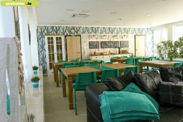 felszerelt, 2 db hűtő fagyasztóval, 2 db mikro, 1 db kávéfőző, 1 db vízforraló,