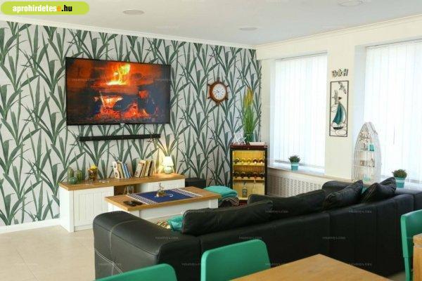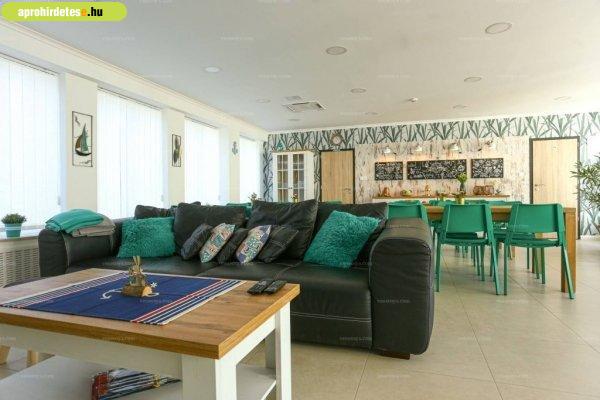 paraméterei:? 9 szoba saját fürdőszobával? 2 apartman saját