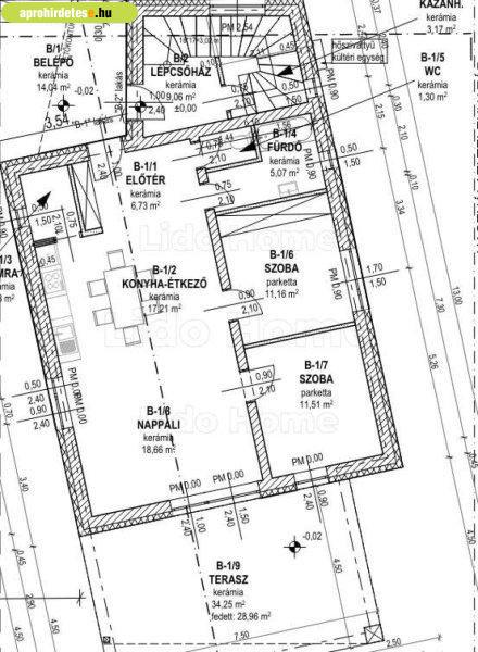 kétlakásos társasház földszinti lakásának jellemzői: -74 m2 alapterület, +34,25
