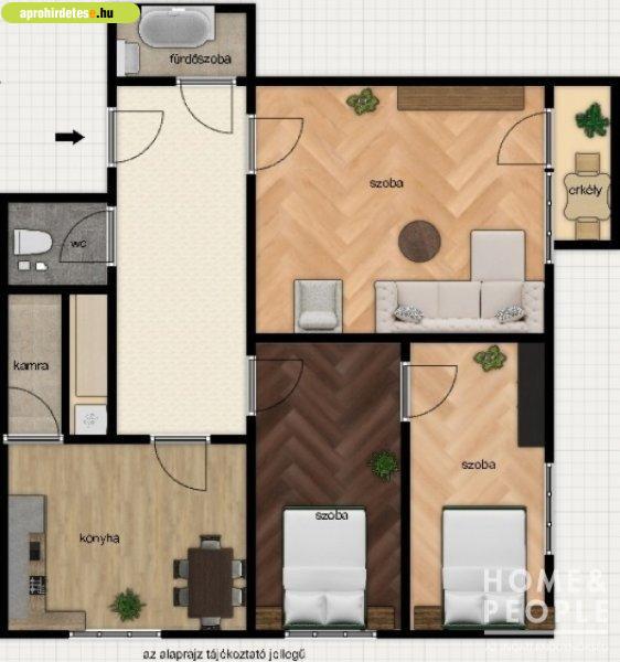 eladó! 2. emelet 73 m˛ alapterületű 3 szoba, fürdőszoba,