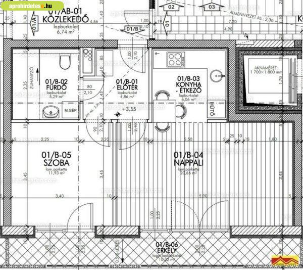 alapterületű, 10,32 m2 alapterületű erkélyel, amerikai konyhás nappalis + 1