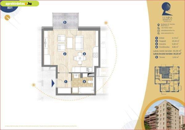 csatolunk, a felsőbb emeleteken stúdió, nappali + 1 hálós és 2 hálós lakásokból