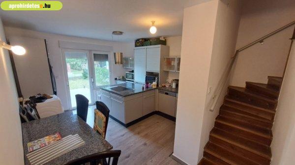 pedig villanybojler.A ház előtt egy gondozott kis kert is található.A telken