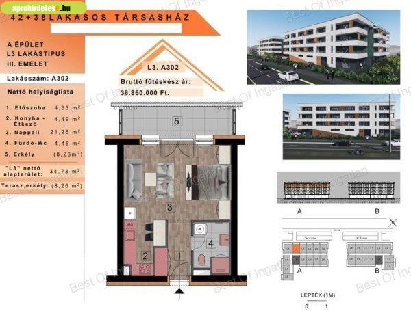 ütem lakásaiból kedvére válogathat:34,73 m2 - 69,13 m2-es lakások, mindegyik