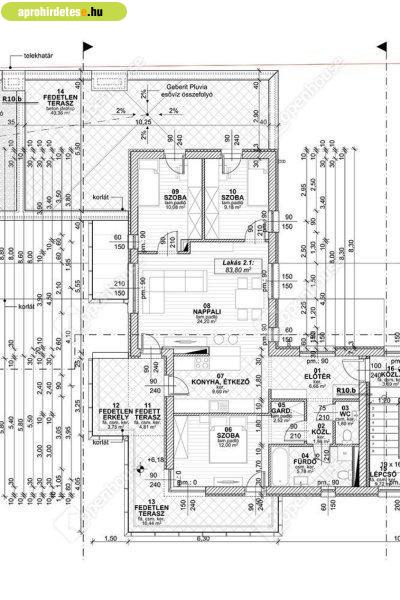 alapterület, 4.81 m2 fedett terasz, 54.55 m2 fedetlen terasz. 30-as tégla