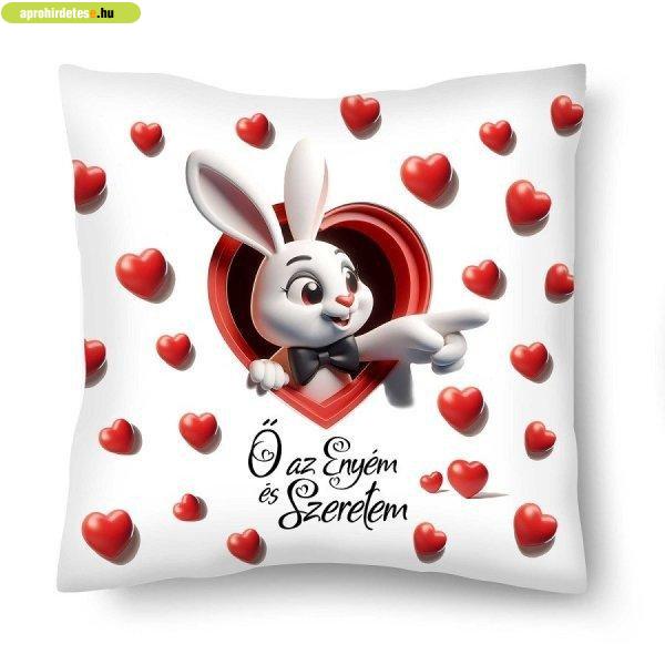 Lakberendezés rovaton belül a(z) "Kicsi díszpárna, Ő az enyém és szeretem, fiú nyuszi" című hirdetést látja. (fent)