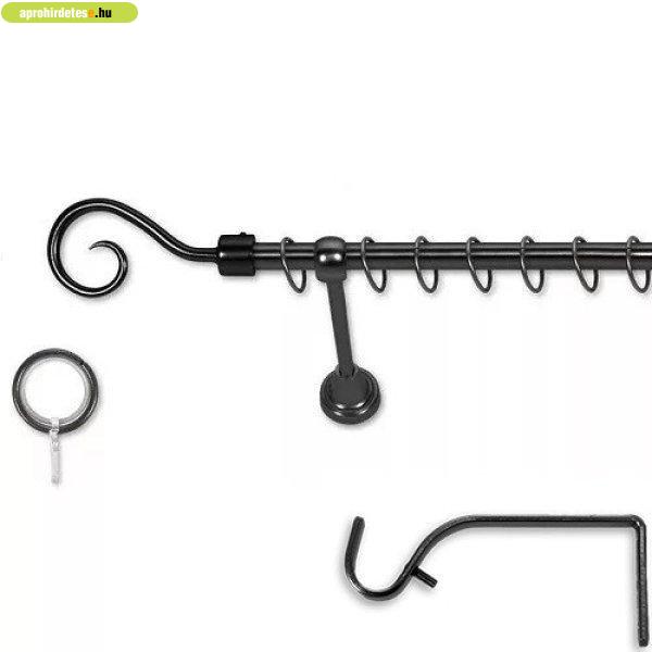 Fekete színű szimpla karnisgarnitúra. A szett tartalma: 1 db 16mm átmérőjű,