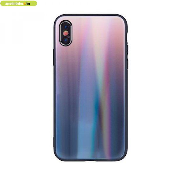 Rainbow szilikon tok üveg hátlappal - Huawei Y7 (2019) barna - fekete - Eladó -