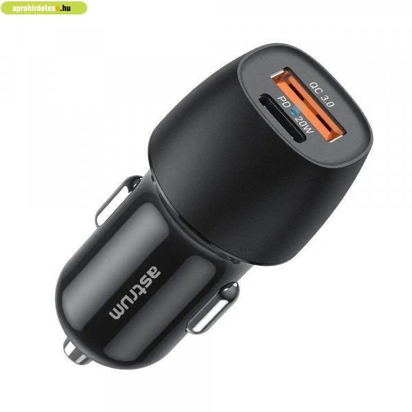 Astrum PRO GO PD20 autós szivar gyorstöltő 1X USB (18W), 1X Type-C (20W)