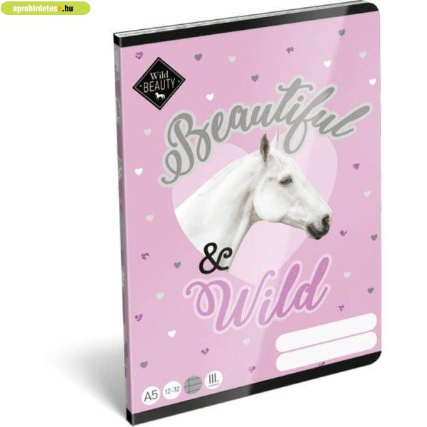 Papíráru rovaton belül a(z) "Wild Beauty Purple tűzött füzet A/5, 32 lap vonalas 3.osztál" című hirdetést látja. (fent)