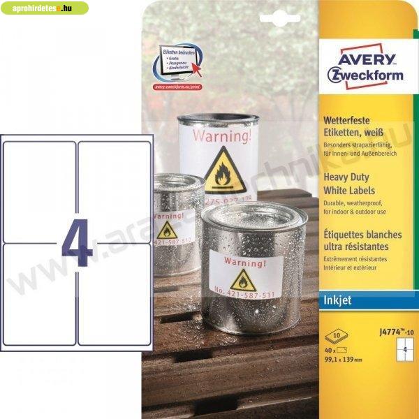 J4774-10 Avery időjárásálló fehér poliészter címke 99,1x139m
