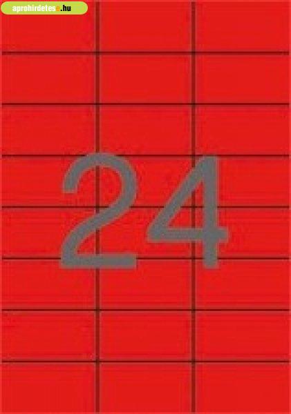 Etikett címke színes 70X37 mm piros 24 db/ív, 25 ív/csomag