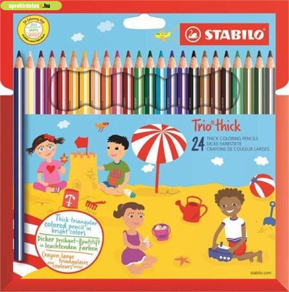 Színes ceruza készlet, vastag, háromszögletű, hegyezővel, STABILO "Trio thick",