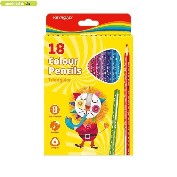 Színes ceruza készlet háromszögletű Keyroad 18 klf. szín