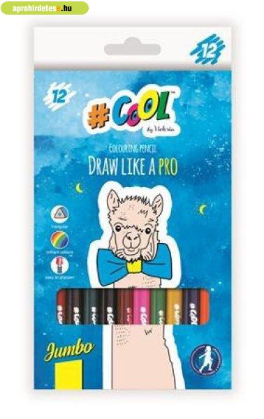 Színes ceruza készlet, háromszögletű, vastag, COOL BY VICTORIA, 12 különböző