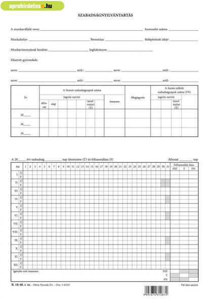 Papíráru rovaton belül a(z) "Szabadságnyilvántartás szabadlap A/4 álló B.18-48" című hirdetést látja. (fent)