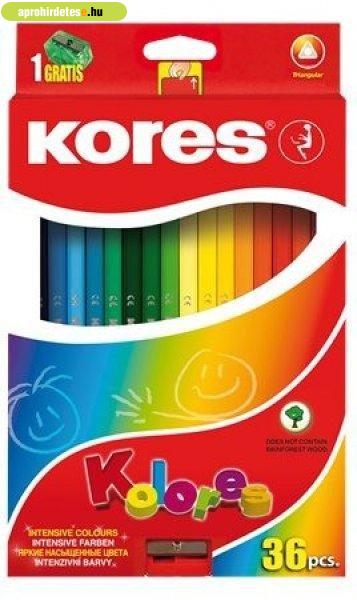 Színes ceruza készlet, háromszögletű, Kores Triangular, 36 k