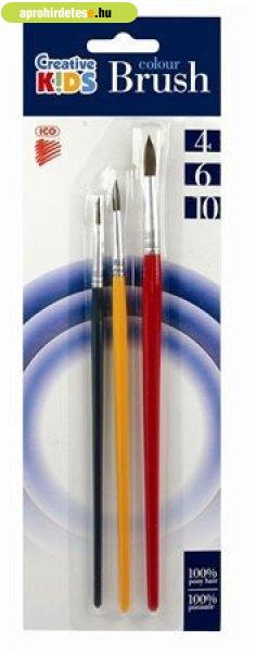 Ecsetkészlet, no. 4-6-10, fa, ICO "Creative Kids" pónilószőr ecset festett
