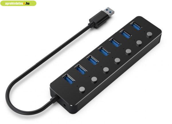Számítógépek rovaton belül a(z) "Gembird UHB-U3P7P-01 7-portos USB3.1 HUB Black" című hirdetést látja. (fent)