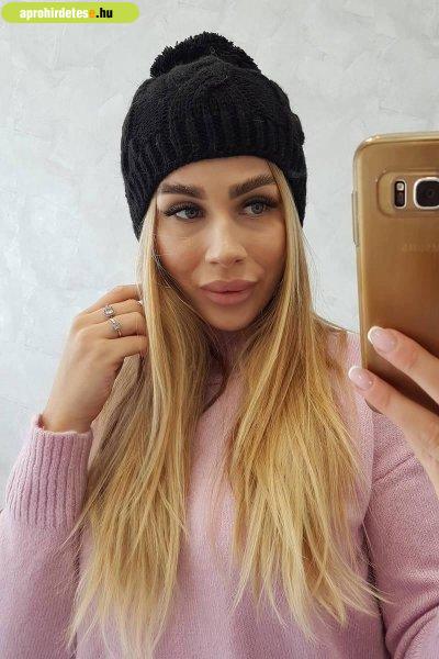 Ruhák rovaton belül a(z) "Női sapka bojtokkal Stefania K278 fekete" című hirdetést látja. (fent)