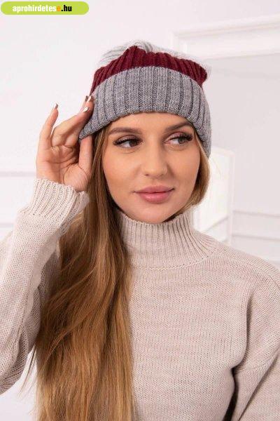 Női sapka Bojana K265 sötétszürke + bordó + világosszürke