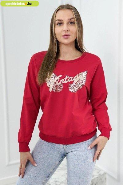 Fényes mintával és hímzett Vintage piros felirattal ellátott