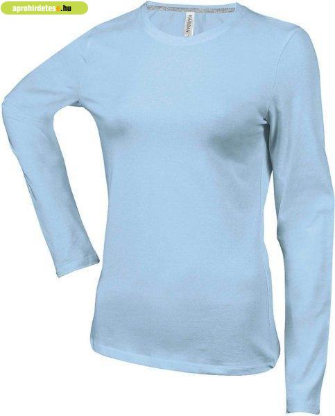 Női hosszú ujjú kereknyakú pamut póló, Kariban KA383, Sky Bl