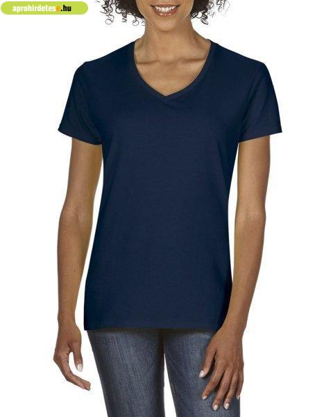 Rövid ujjú V-nyakú női póló, Gildan GIL4100V, Navy-XL