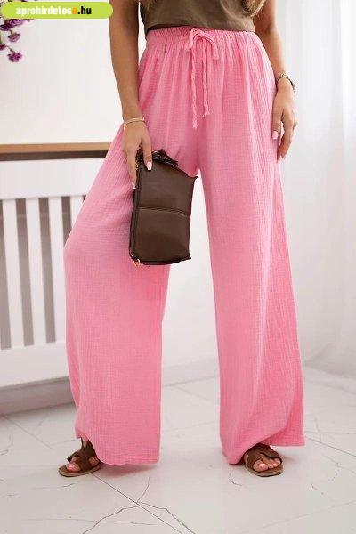 Széles muszlin nadrág, modell 3204 világos rózsaszín