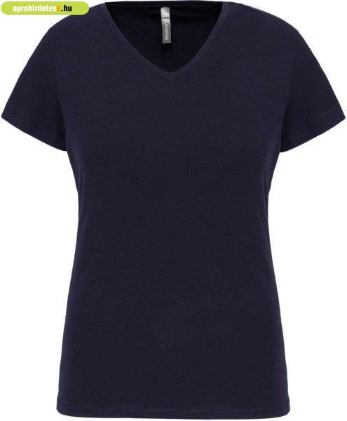 Női rövid ujjú V-nyakú sztreccs póló, Kariban KA3015, Navy-X