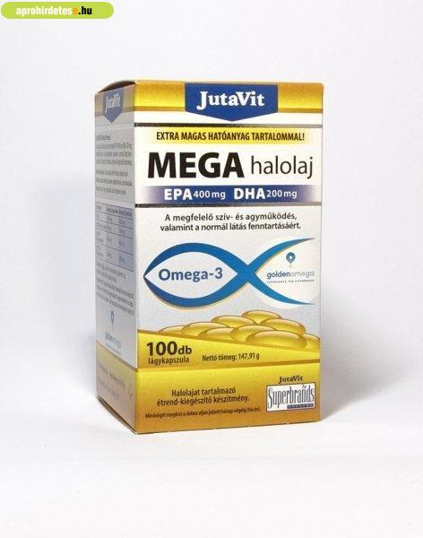 Szépségápolási termékek rovaton belül a(z) "JutaVit Mega Omega-3 halolaj kapszula (100 db)" című hirdetést látja. (fent)